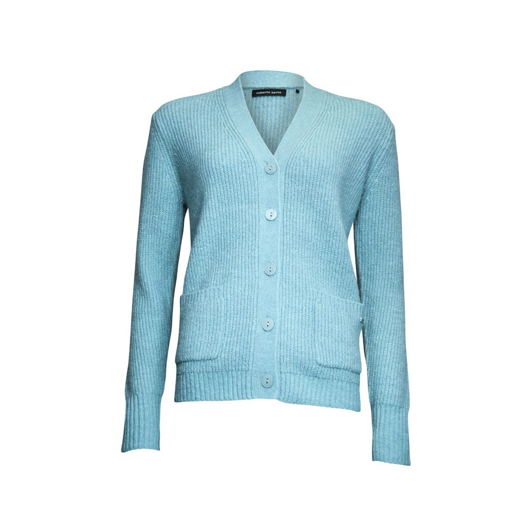Vest van Roberto Sarto in ribstructuur met lange mouwen, V-hals, knoopsluiting en twee zakken.