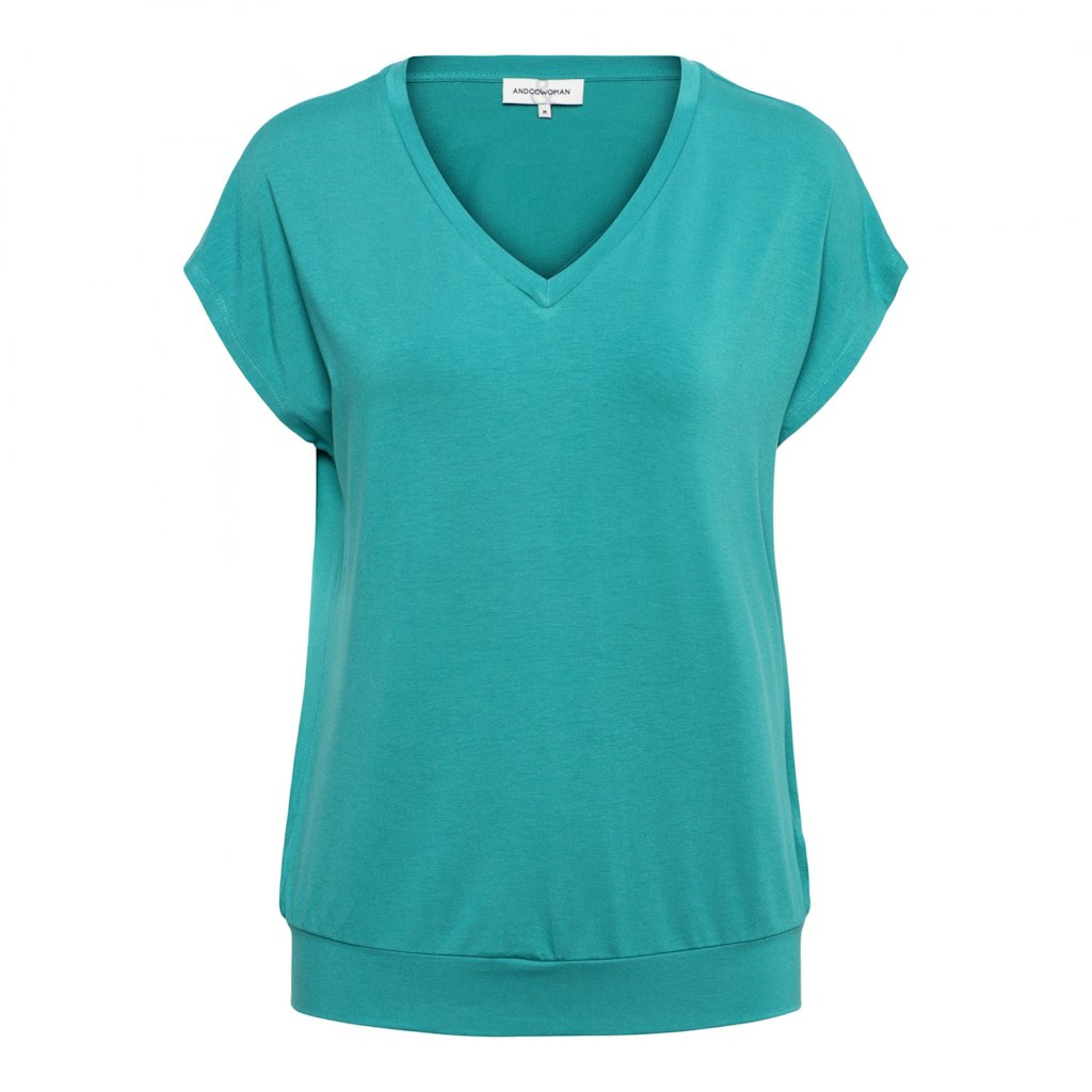 Shirt van &Co Woman met korte aangeknipte mouwen, V-hals en een elastische boord aan de onderzijde.