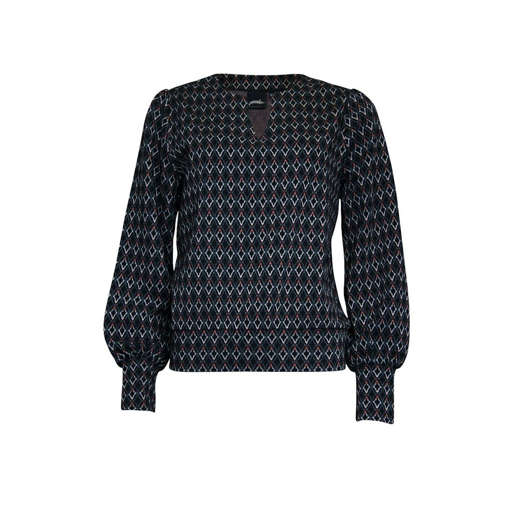 Trui van Poools in een all-over jacquard dessin met lange mouwen en een ronde hals voorzien van V-uitsnede.