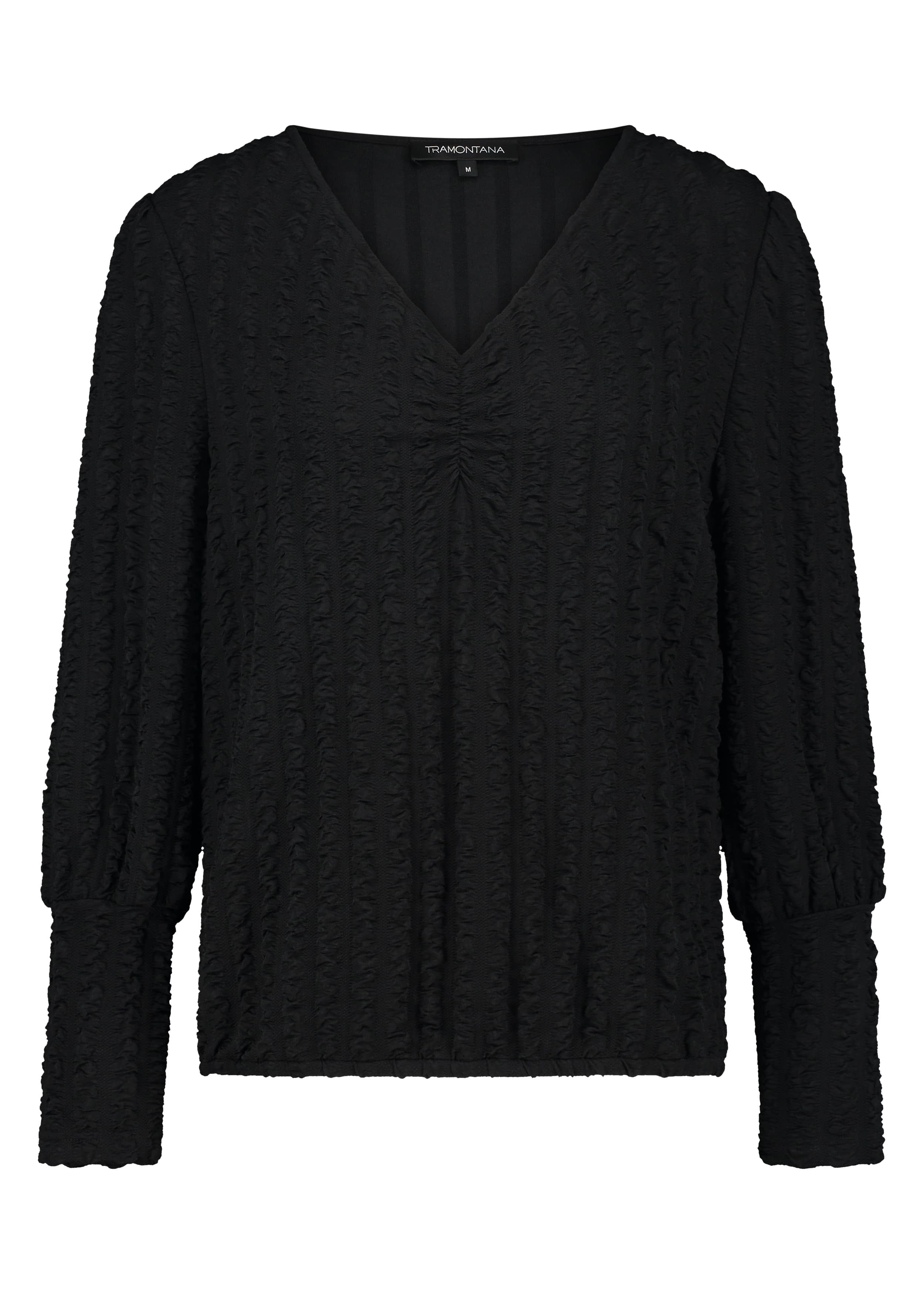 Shirt van Tramontana in een structuur dessin met een V-hals en lange pofmouwen voorzien van brede manchetten.