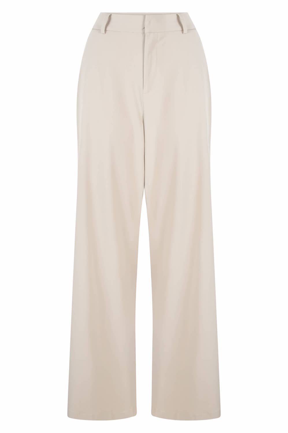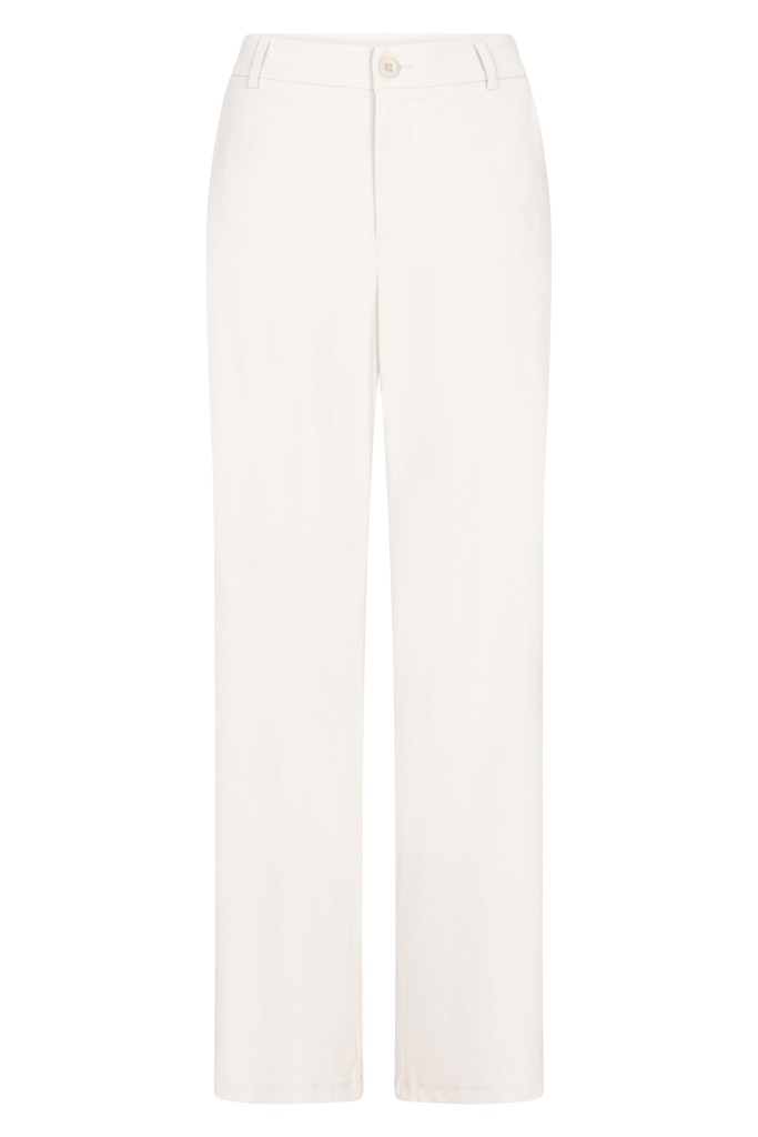 Pantalon van ZOSO in travel kwaliteit met wijde pijpen, schuifknoop- en ritssluiting, steekzakken en paspelzakken aan de achterzijde.