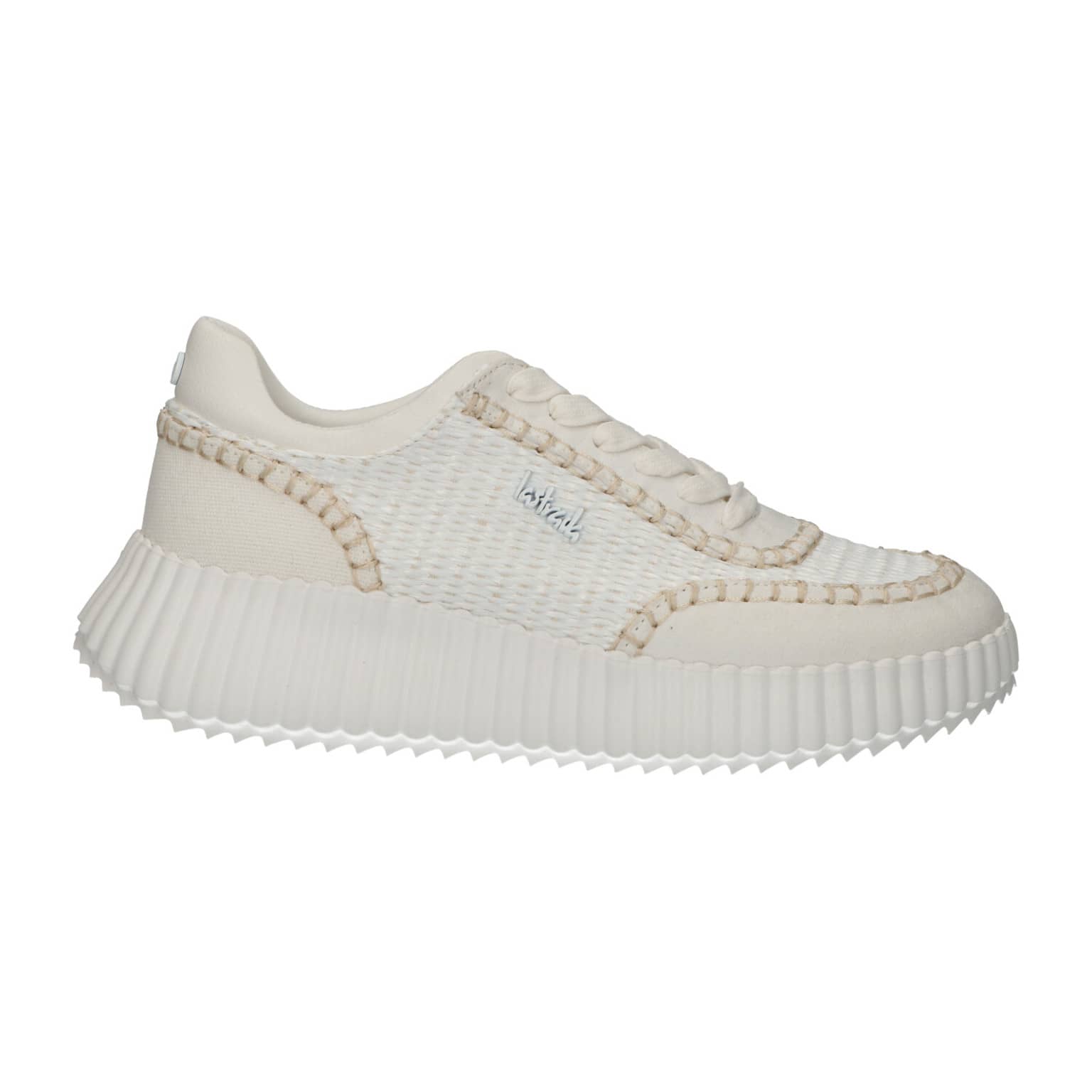 Sneaker van La Strada met een vetersluiting, canvas voetbed, textiel buitenkant en een rubberen zool van 3-4 cm hoog.