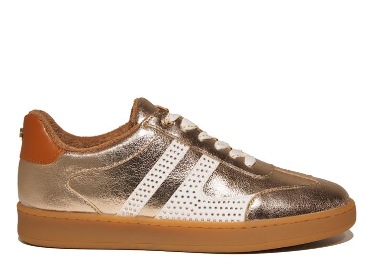 Sneaker van La Strada met gouden details, synthetische buitenkant, textiel voetbed, vetersluiting en een rubberen zool van 1-2 cm hoog.