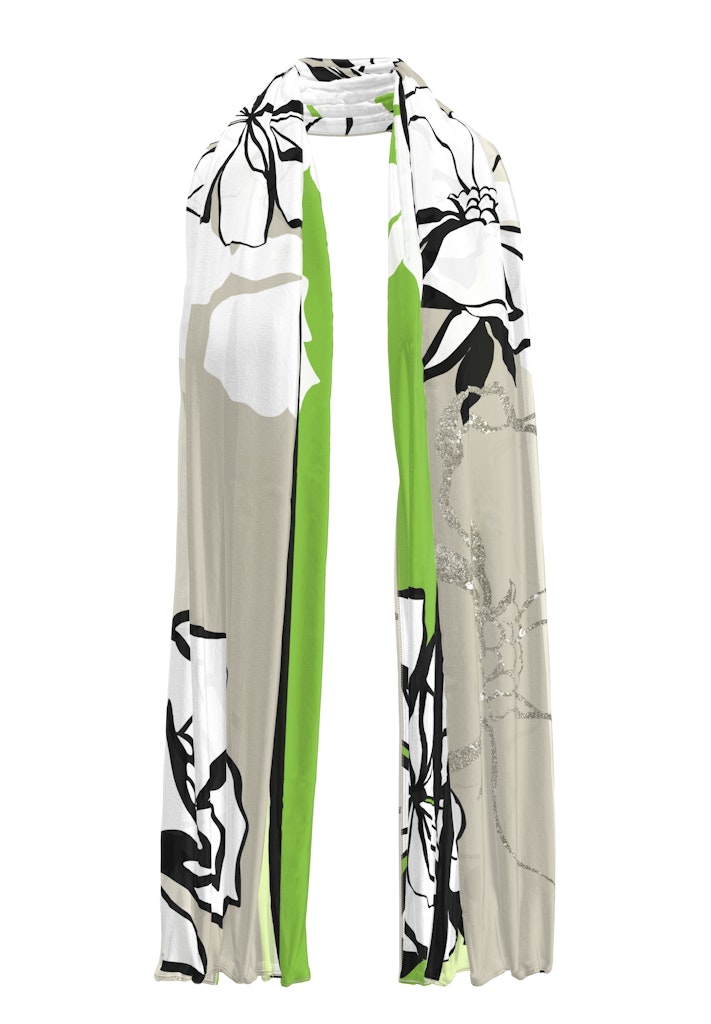 Lange sjaal van Frank Walder in een all-over dessin. Materiaal: Polyester 100%