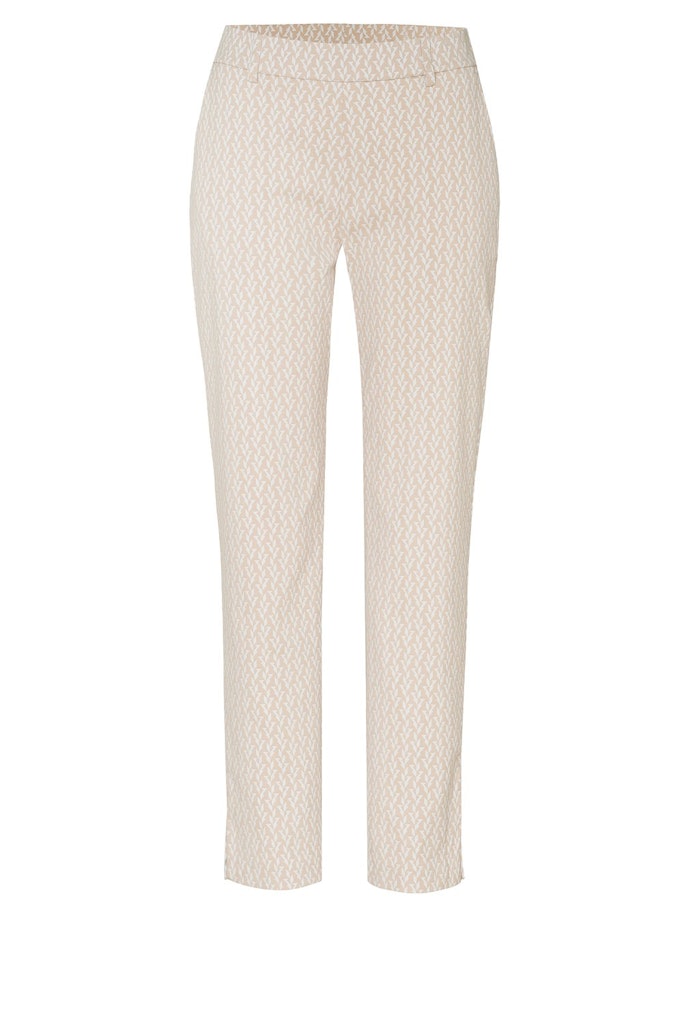 Enkellange broek van Toni in een structuur dessin met steekzakken, paspelzakken aan de achterzijde, korte split in de pijpen en een elastische tailleband.