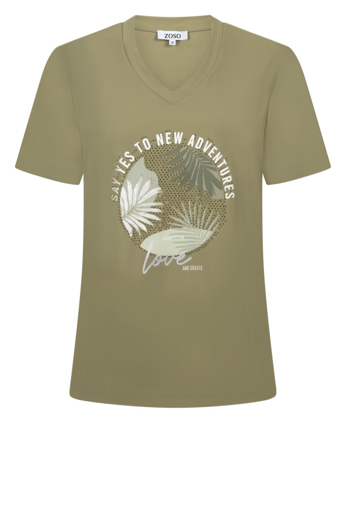 T-shirt van Zoso in travel kwaliteit met korte mouwen, V- hals en een print aan de voorzijde. Materiaal: Polyamide 80%| elastan 20%