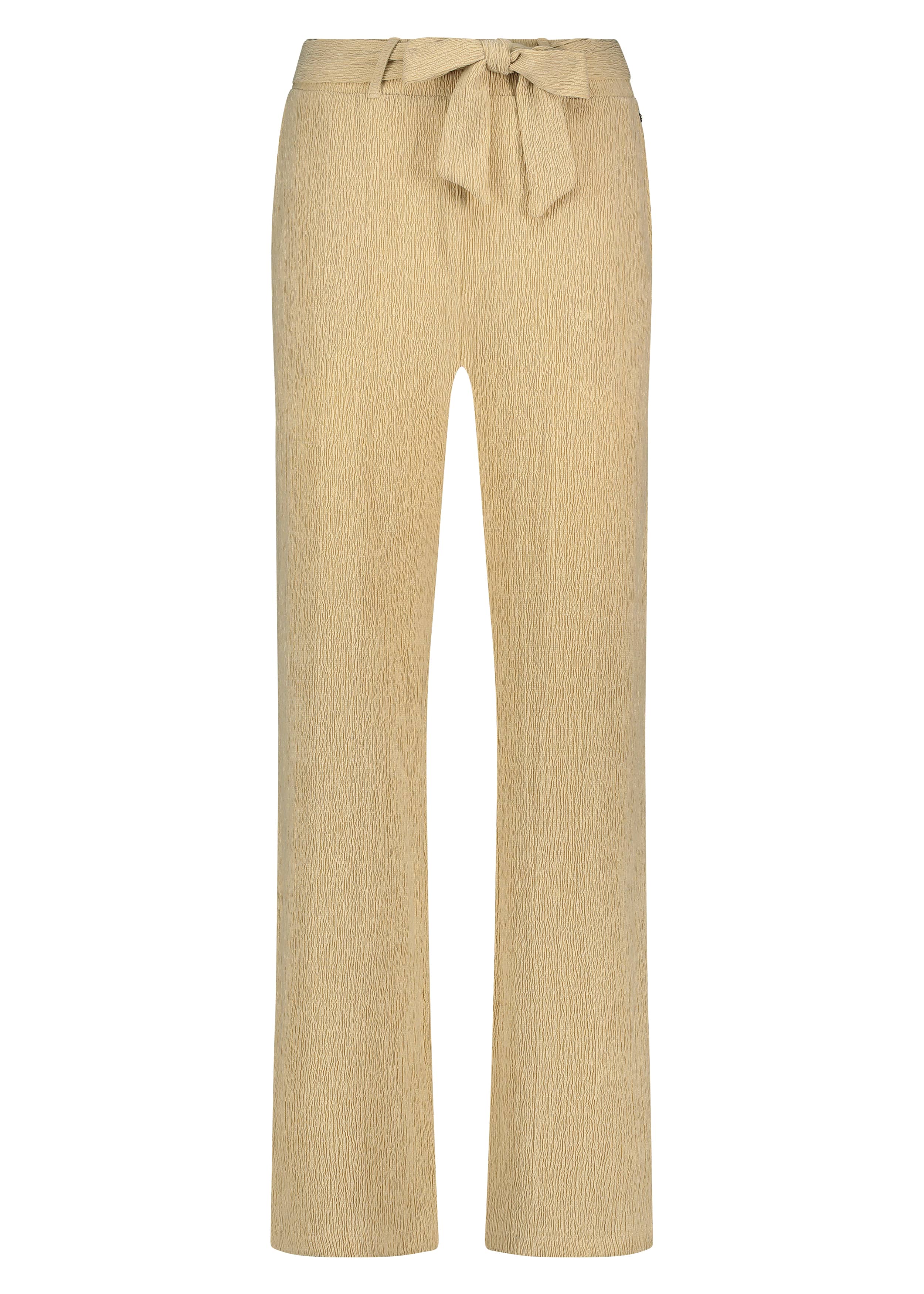 Broek van Tramontana in een structuur dessin met wijde pijpen, steekzakken, paspelzakken aan de achterzijde en een elastische tailleband voorzien van strikceintuur.