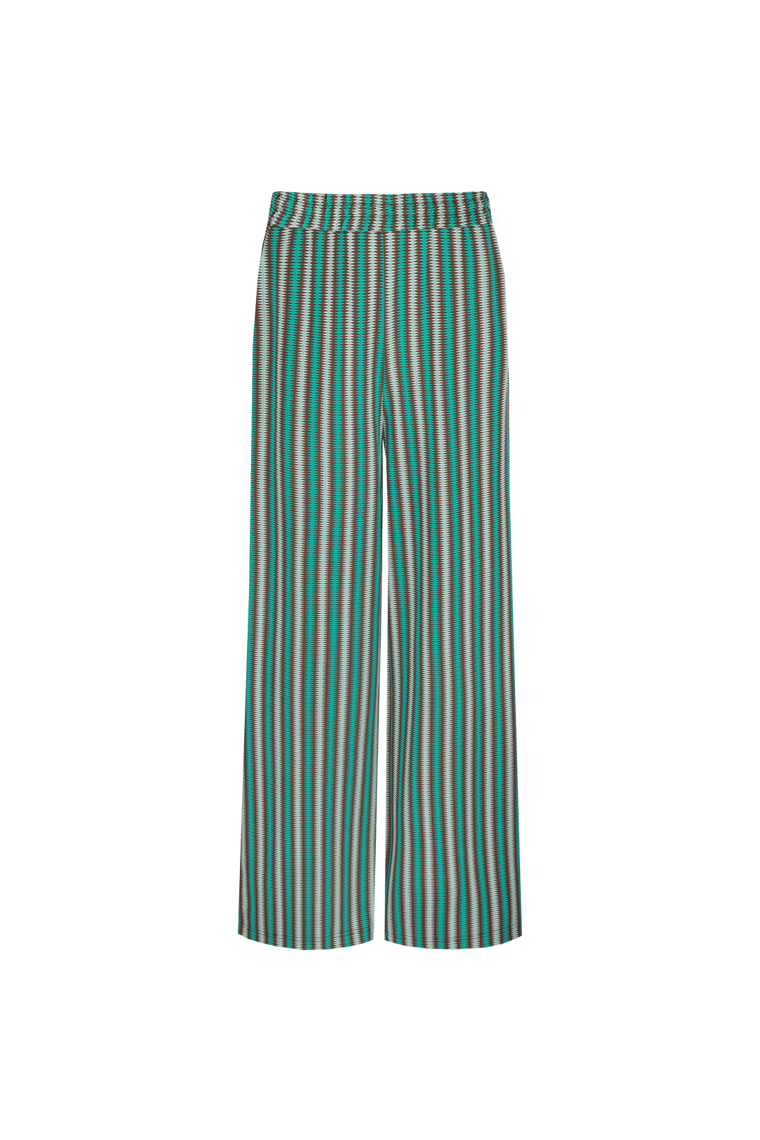 Gestreepte broek van G-maxx in een structuur dessin met steekzakken, twee paspelzakken aan de achterzijde en een elastische tailleband.