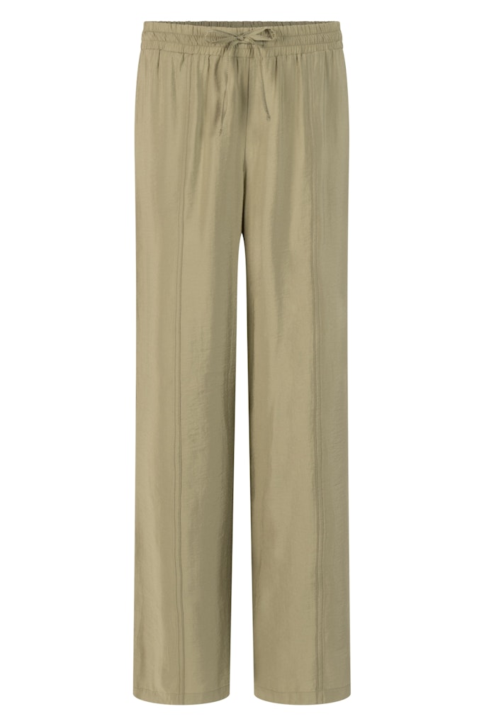 Broek van ZOSO met wijde pijpen, elastische tailleband, steekzakken en paspelzakken aan de achterzijde. Materiaal: Modal 85%| polyester 15%