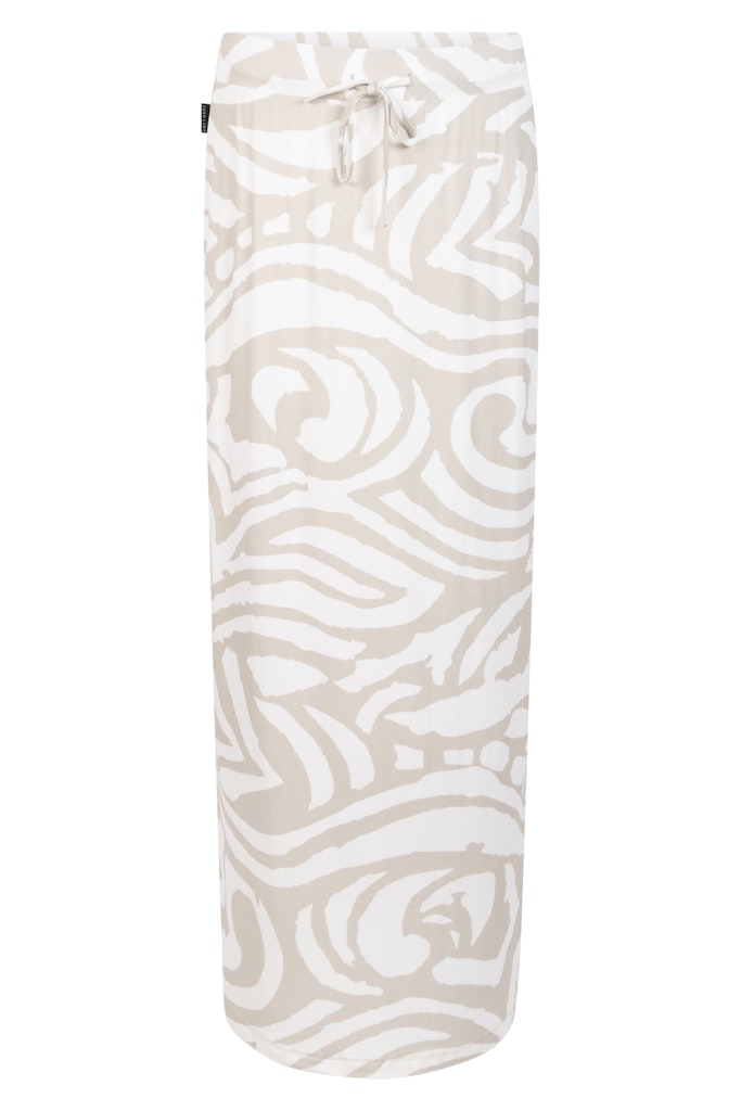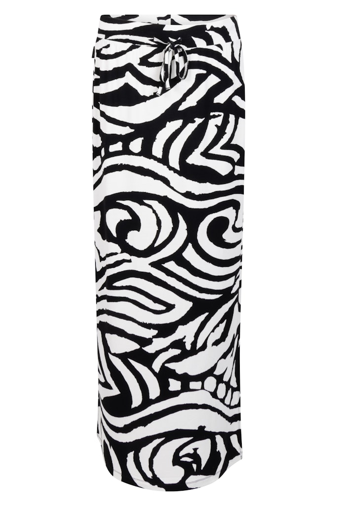 Rok van Zoso in een all-over dessin met een elastische tailleband voorzien van trekkoord en zijsplit. Materiaal: Viscose 80%| elastan 20%