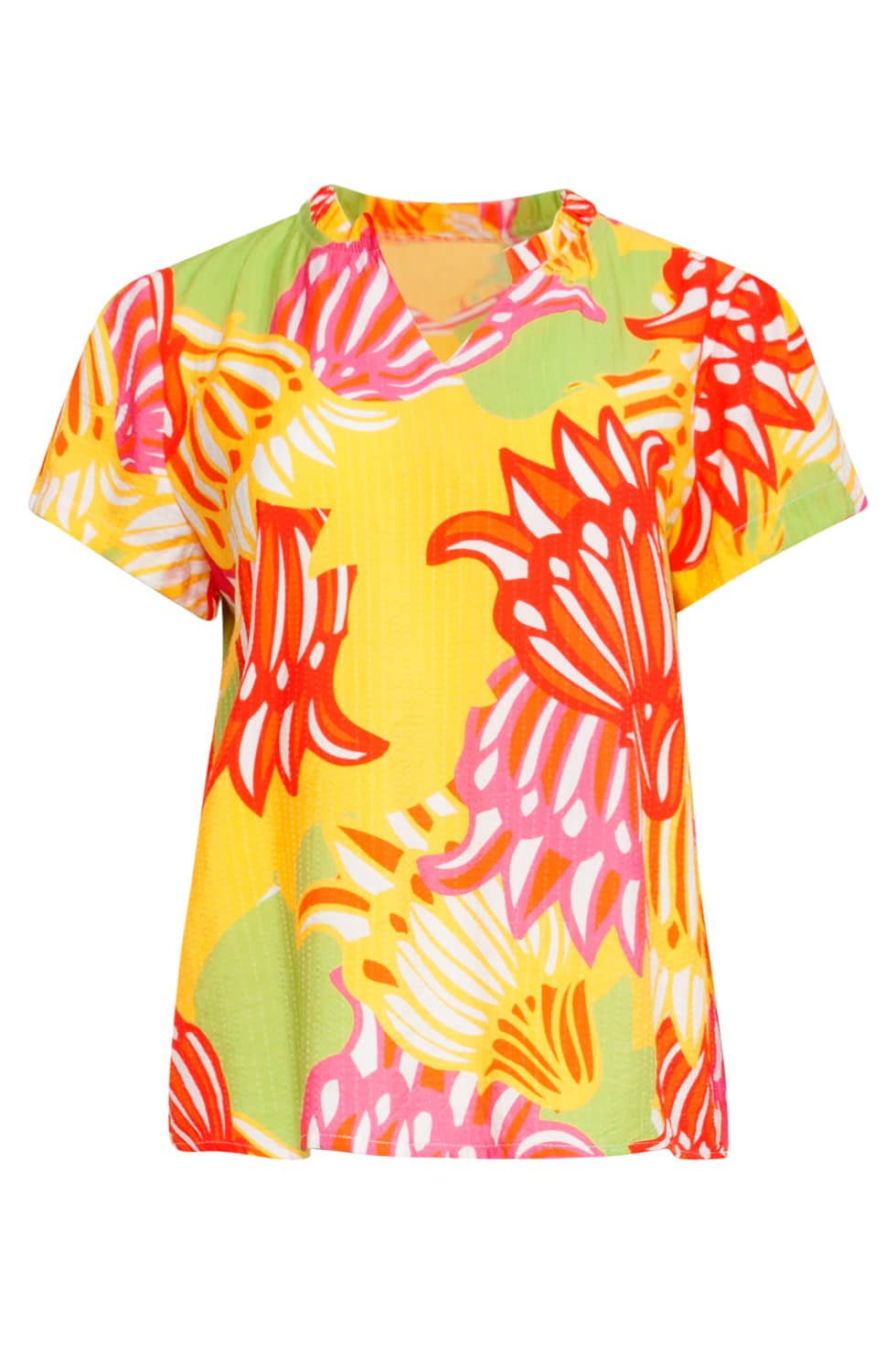Top van Smashed Lemon in een all-over bloemen dessin met korte mouwen en een V-hals. Materiaal: Rayon 90%| nylon 10%