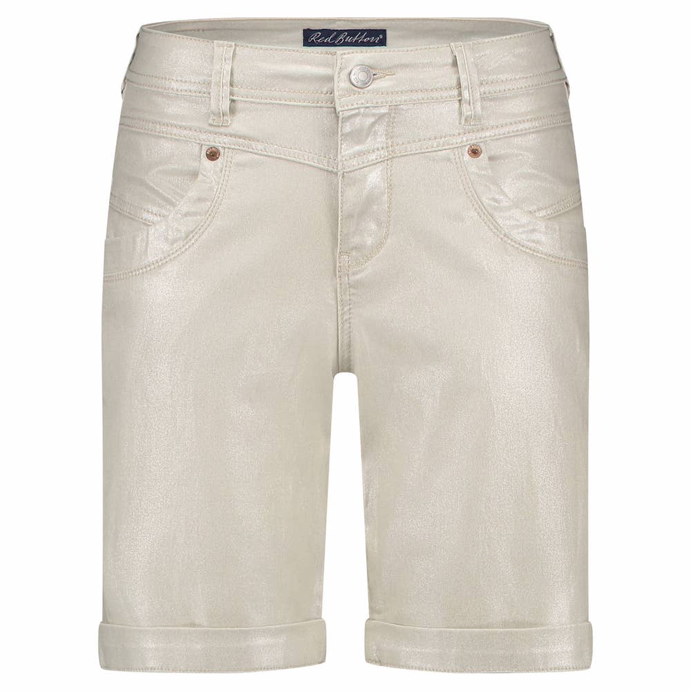 Glanzende 4-pocket short van Red Button met een knoop- en ritssluiting en een omslag onderaan de pijpen.
