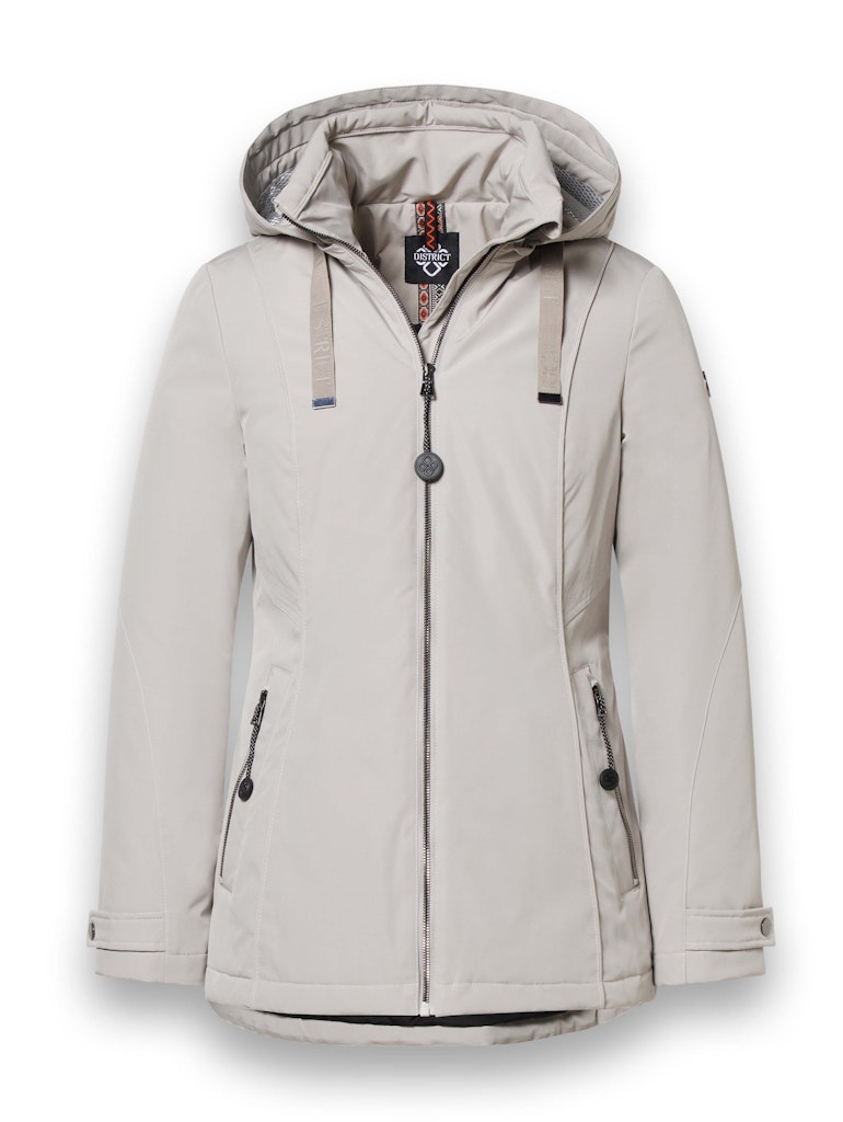 Getailleerd jack van District in een waterafstotende stof met een ritssluiting, opstaande kraag, afneembare en verstelbare capuchon, ritszakken, windvangers in de manchetten en logo op de linkermouw.