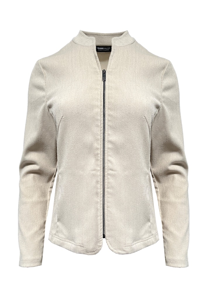 Glanzend jacket van Frank Walder met lange mouwen, opstaande kraag en een ritssluiting. Materiaal: Polyester 97%| elastan 3%