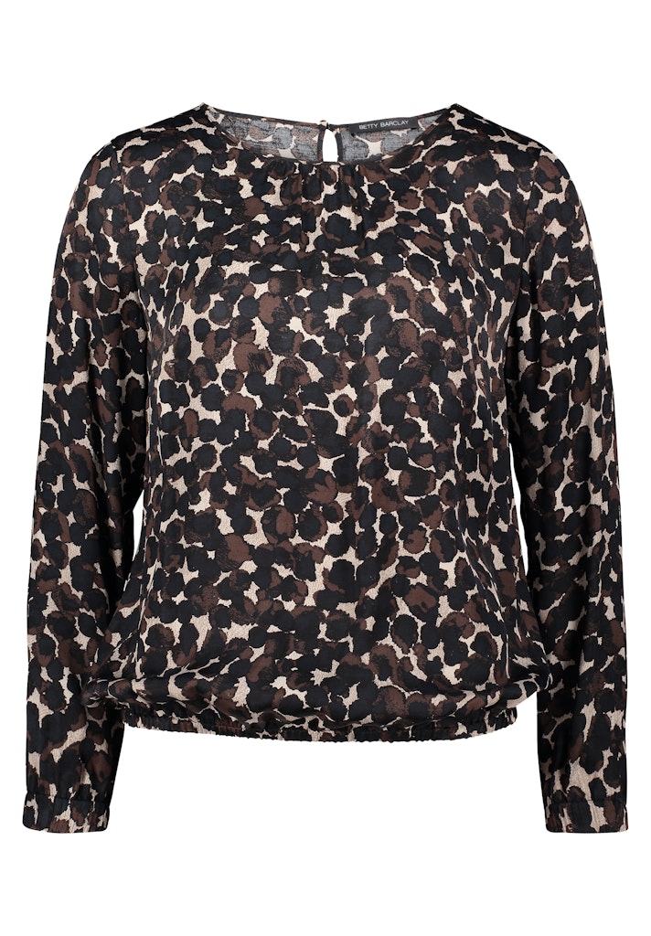 Shirt van Betty Barclay in een all-over dessin met lange mouwen, ronde hals, keyhole met knoopsluiting aan de achterzijde en een elastische zoom.