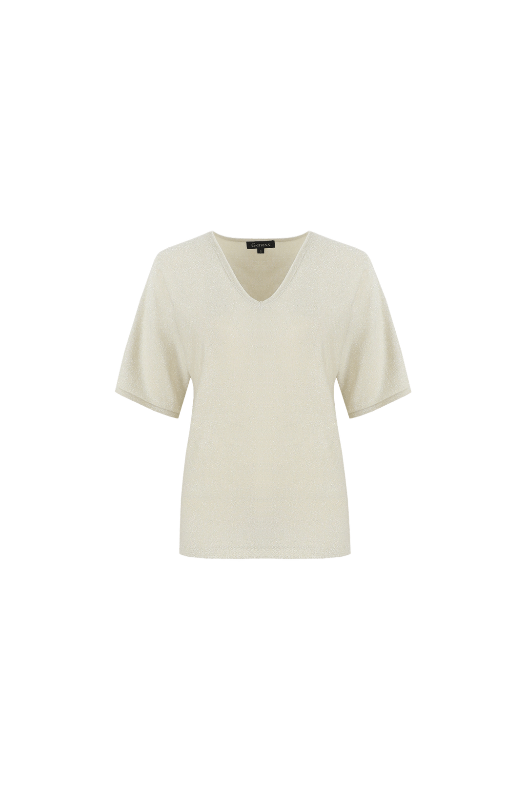 Shirt van G-maxx met een subtiele glans, halflange mouwen en V-hals. Materiaal: Viscose 75%| elastan 15%| polyester 10%