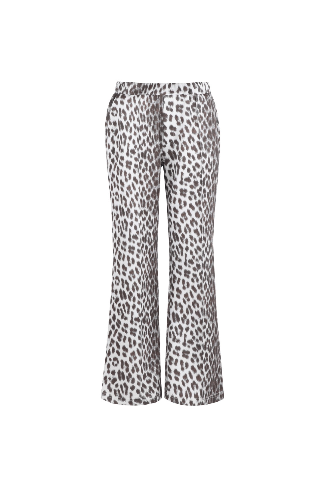 Broek van G-maxx in een all-over luipaard dessin met licht uitlopende pijpen, elastische tailleband, steekzakken en paspelzakken aan de achterzijde.