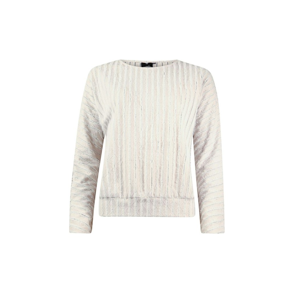 Zachte jersey trui van Poools in een bont streepjes patroon met lange vleermuismouwen en een ronde hals. Materiaal: Polyester 95%| elastan 5%