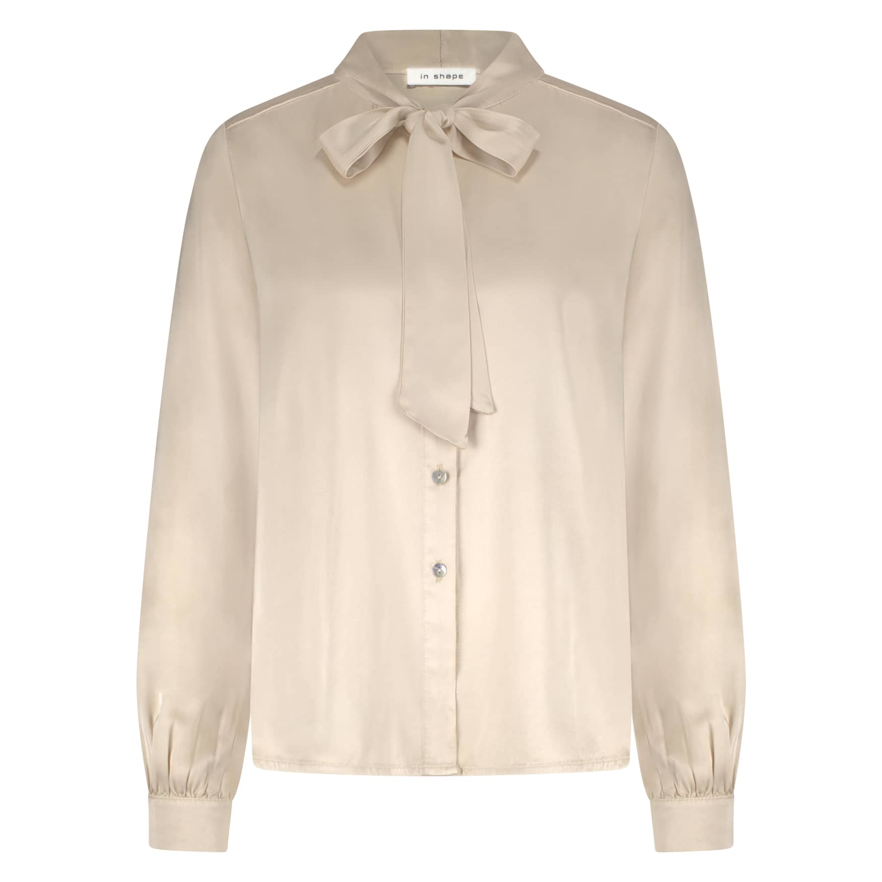 Glanzende blouse van In Shape met lange mouwen, knoopsluiting en strikkraag. Materiaal: Viscose 100%