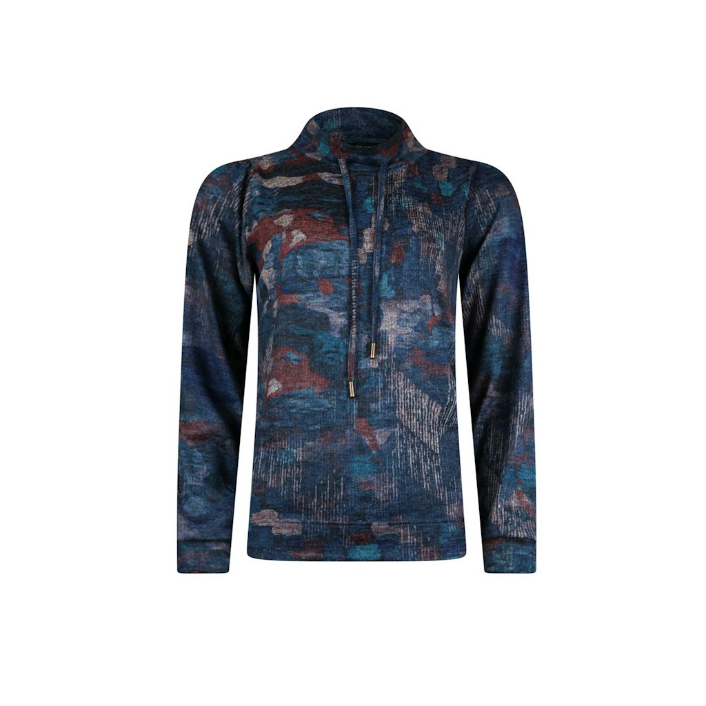 Fijn gebreide trui van Roberto Sarto in een all-over dessin met lange mouwen voorzien van elastische boorden, turtleneck met trekkoord en een brede tailleband voorzien van korte splitjes.