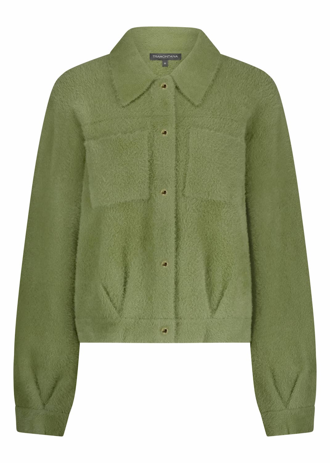 Faux fur gebreid jacket van Tramontana met lange mouwen, kraag, knoopsluiting, opgestikte zakken en gestikte plooien in de zoom.