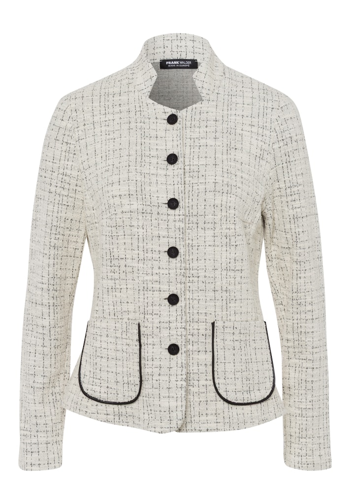 Getailleerde blazer van Frank Walder in een structuur dessin met lange mouwen, opstaande kraag, knoopsluiting en twee opgestikte zakken.