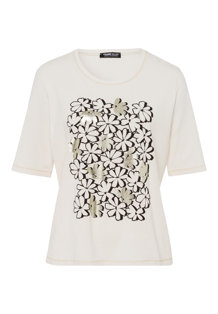 Shirt van Frank Walder met korte mouwen, ronde hals en een blooemenprint aan de voorzijde.