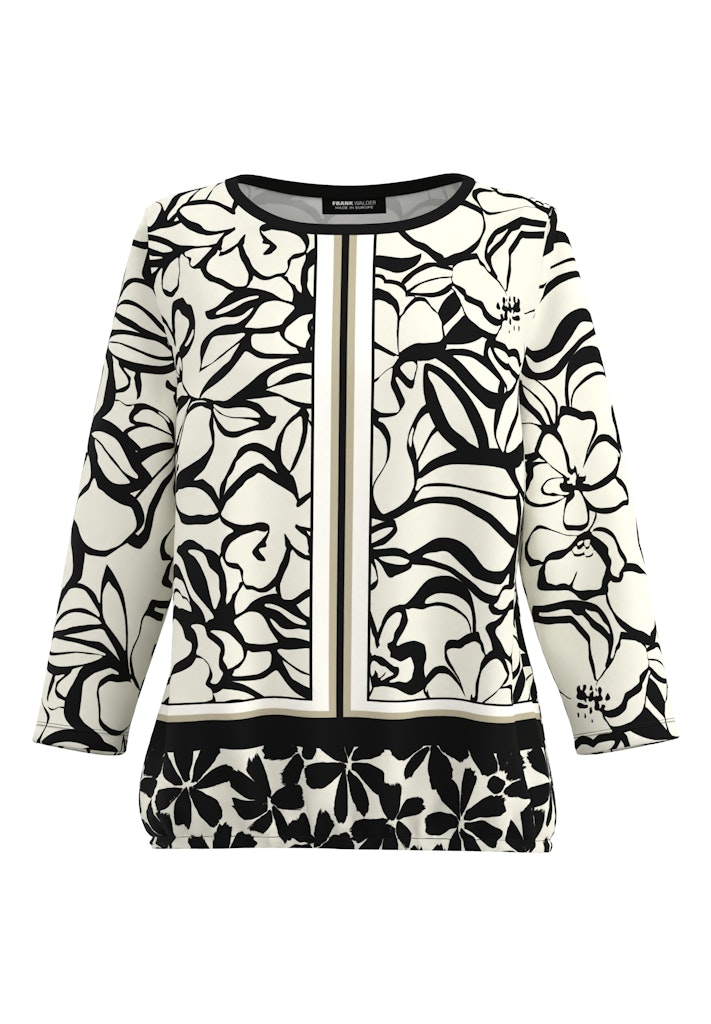 Shirt van Frank Walder in een all-over dessin met driekwart mouwen, ronde hals en een elastische zoom aan de onderzijde.