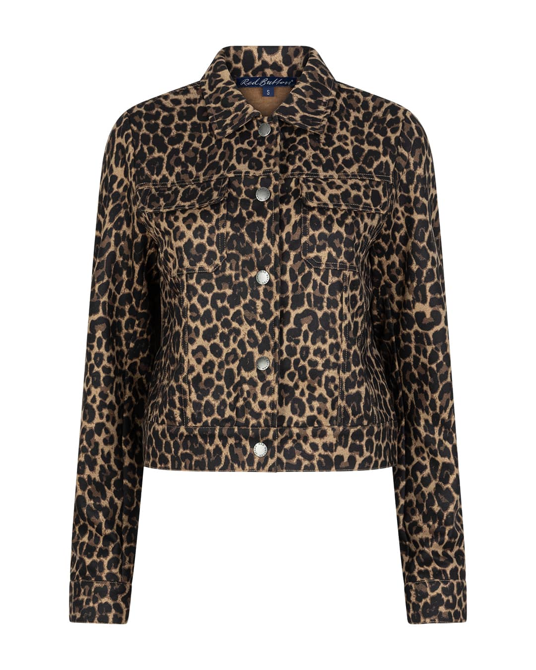 Jacket van Red Button in een leopard dessin met lange mouwen, kraag, knoopsluiting en twee opgestikte klepzakken op de borst.