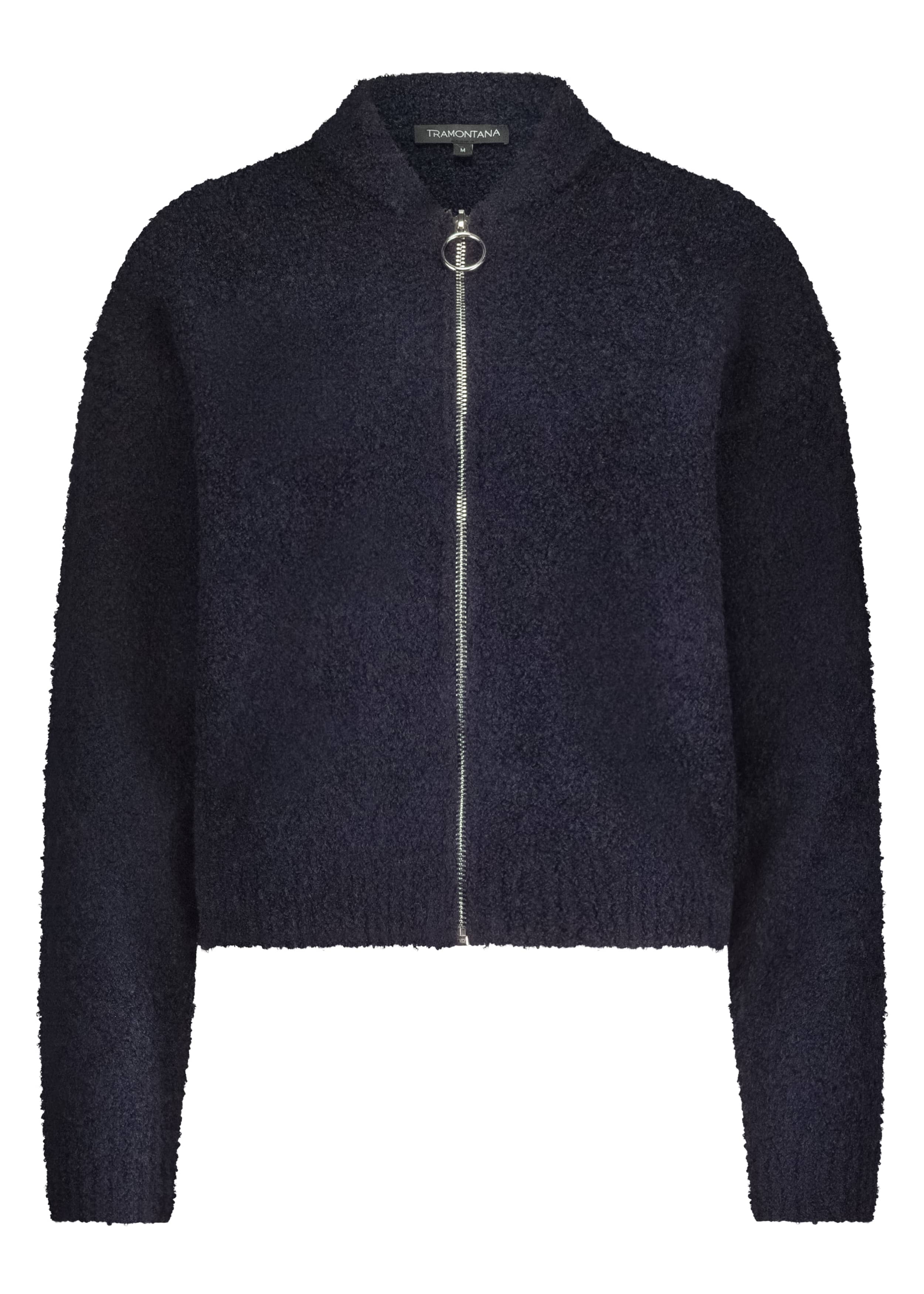 Bouclé vest van Tramontana met lange mouwen, verlaagde schoudernaden, ritssluiting, opstaande kraag en ribgebreide boorden.