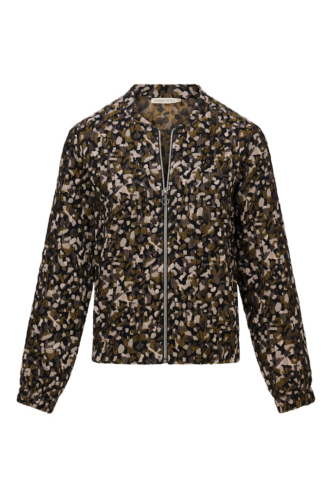 Jacket van Dreamstar in een all-over dessin met lange mouwen, opstaande kraag, ritssluiting en een elastische zoom. Materiaal: Polyester 75%| viscose 23%| elastan 2%