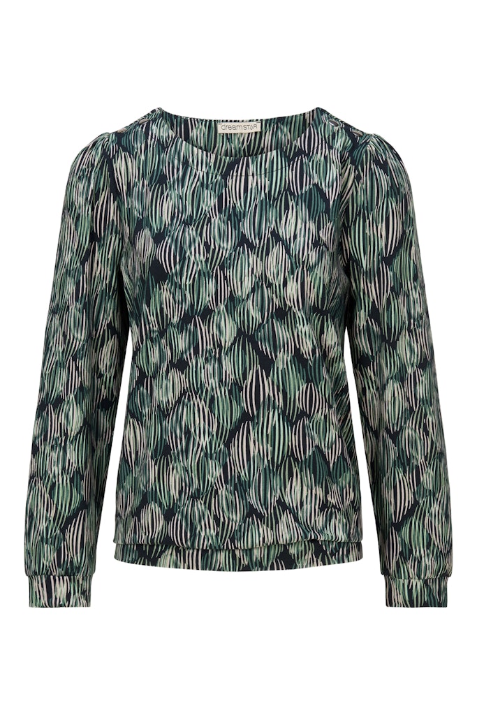 Trui van Dreamstar in een all-over dessin met lange pofmouwen, ronde hals en een elastisch boord aan de onderzijde.