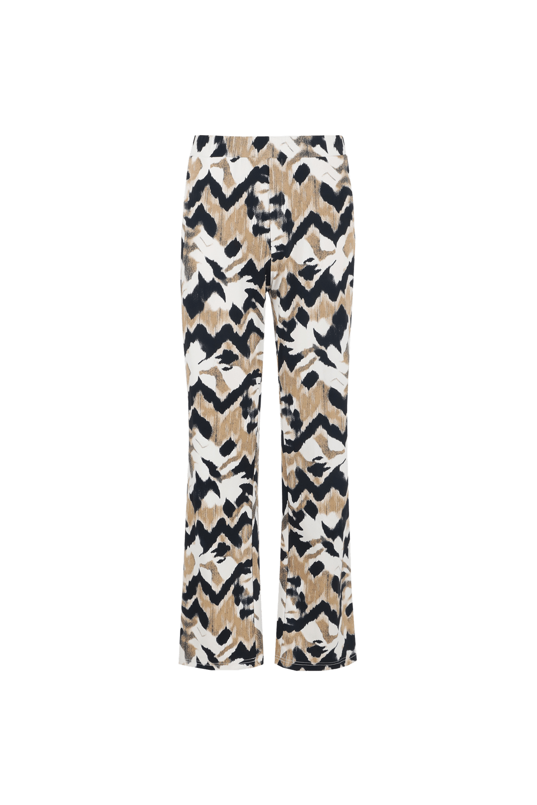 Flared broek van G-maxx in travel kwaliteit met een all-over dessin, steekzakken, twee paspelzakken aan de achterzijde en een elastische tailleband.