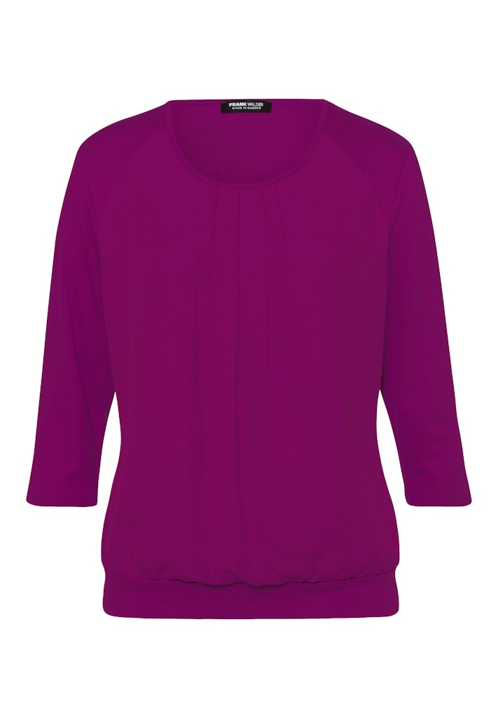 Shirt van Frank Walder met driekwart mouwen, ronde hals voorzien van ingewerkte plooien en een elastisch boord aan de onderzijde.