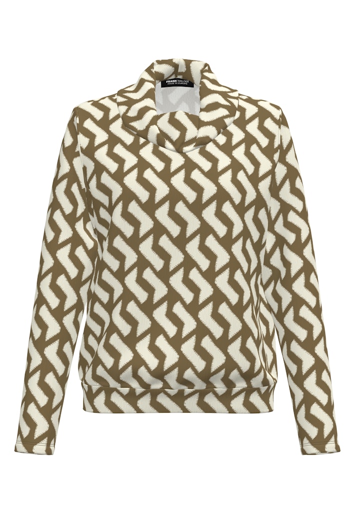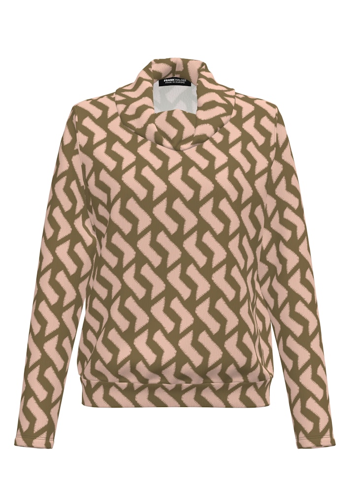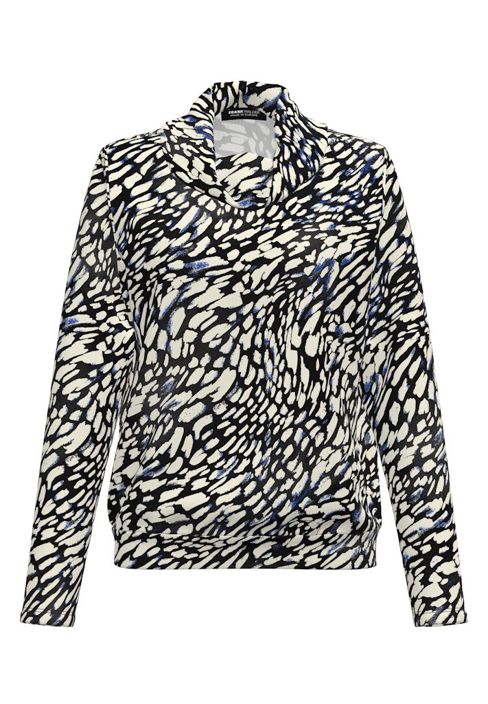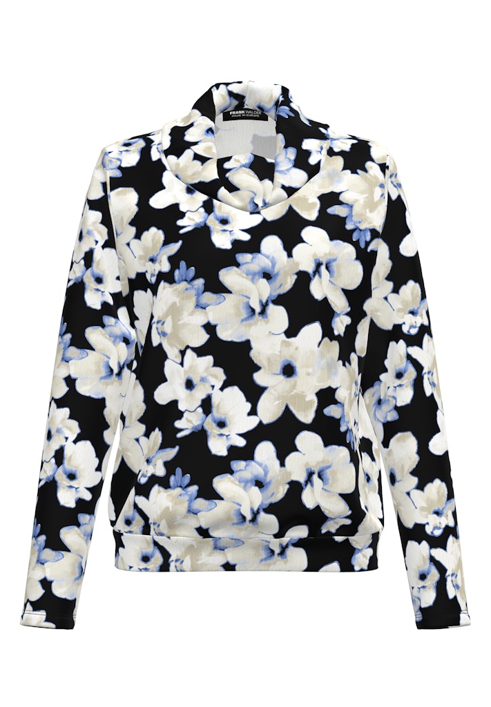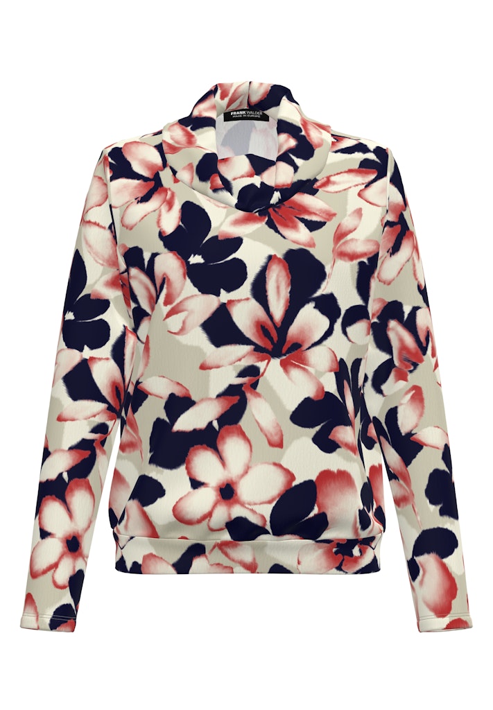Shirt van Frank Walder in een bloemen dessin met lange mouwen, opstaande kraag en een elastische boord aan de onderzijde.