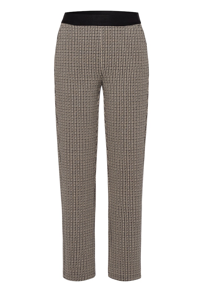 Broek van Frank Walder in een structuur dessin met rechte pijpen en een elastische tailleband. Materiaal: Polyester 58%| katoen 40%| elastan 2%