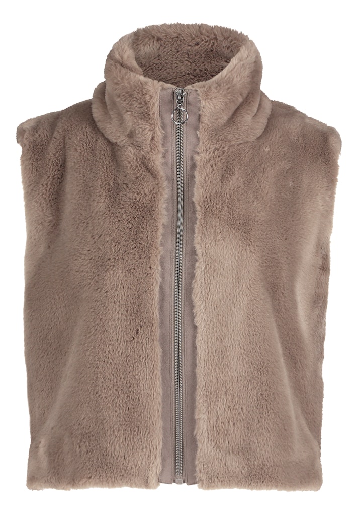 Faux fur gilet van Betty Barclay met een ritssluiting en een opstaande kraag. Materiaal: Polyester 100%