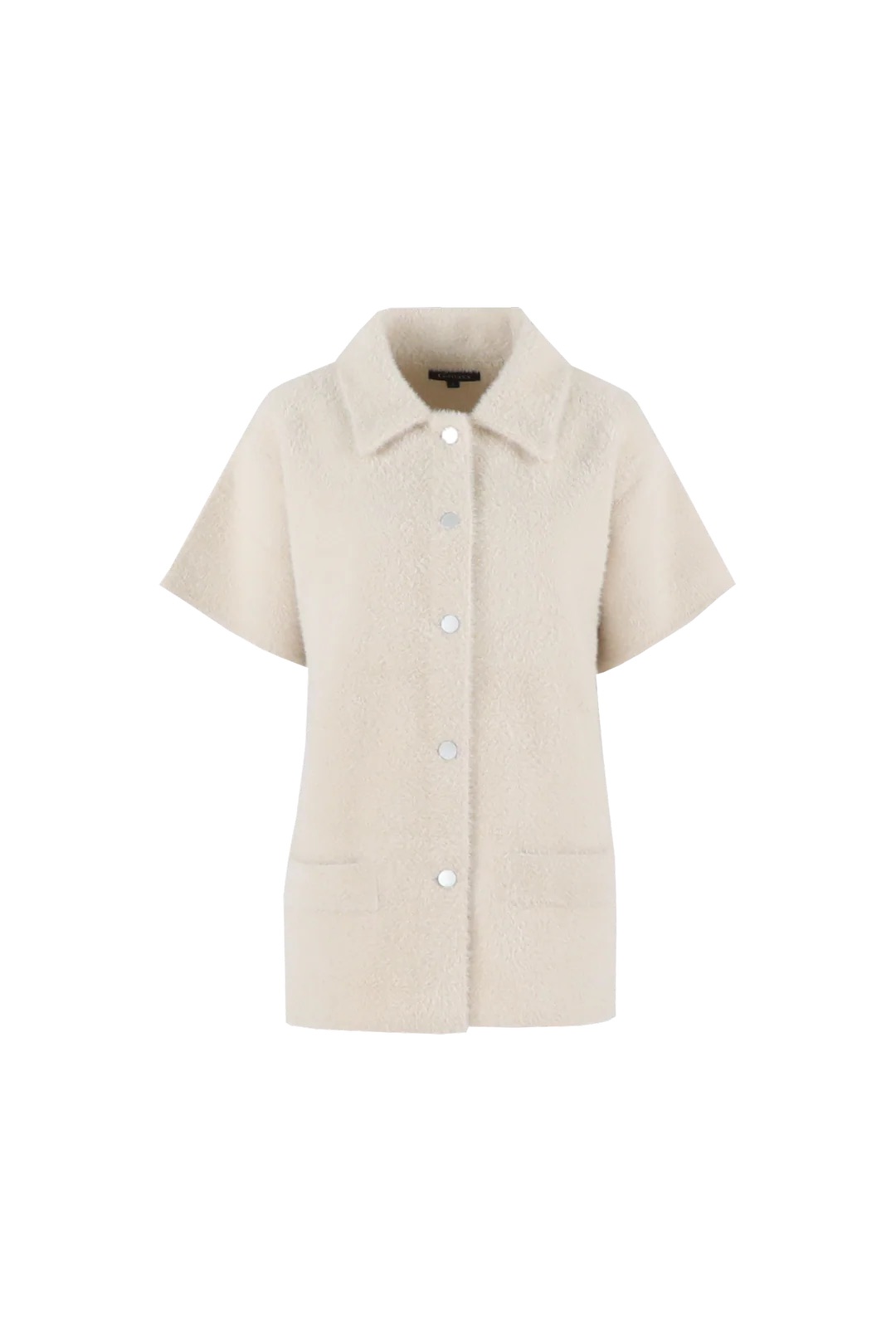 Zacht teddy gilet van G-maxx met korte aangeknipte mouwen, kraag, knoopsluiting en twee paspelzakken. Materiaal: Polyamide 755| viscose 17%| polyester 8%