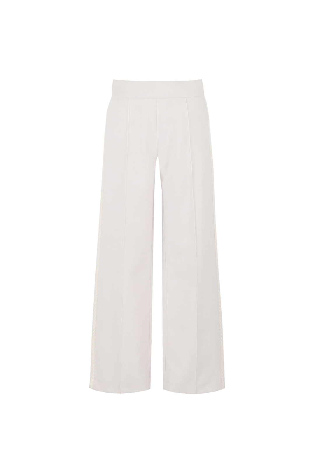 Broek van G-maxx met wijde pijpen voorzien van gevlochten bies aan de zijnaden, pintucknaad aan de voorzijde, elastische tailleband en twee paspelzakken aan de achterzijde.