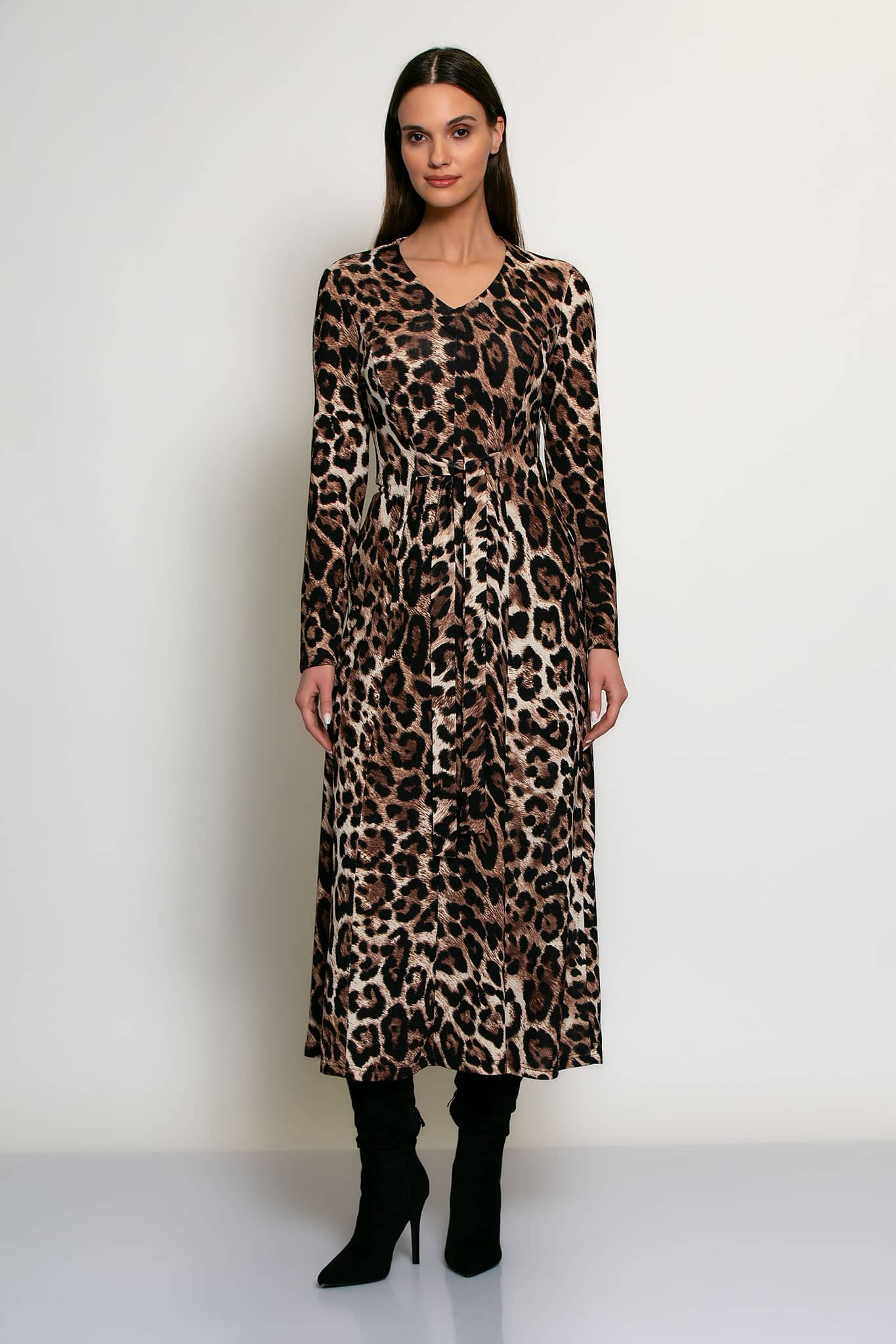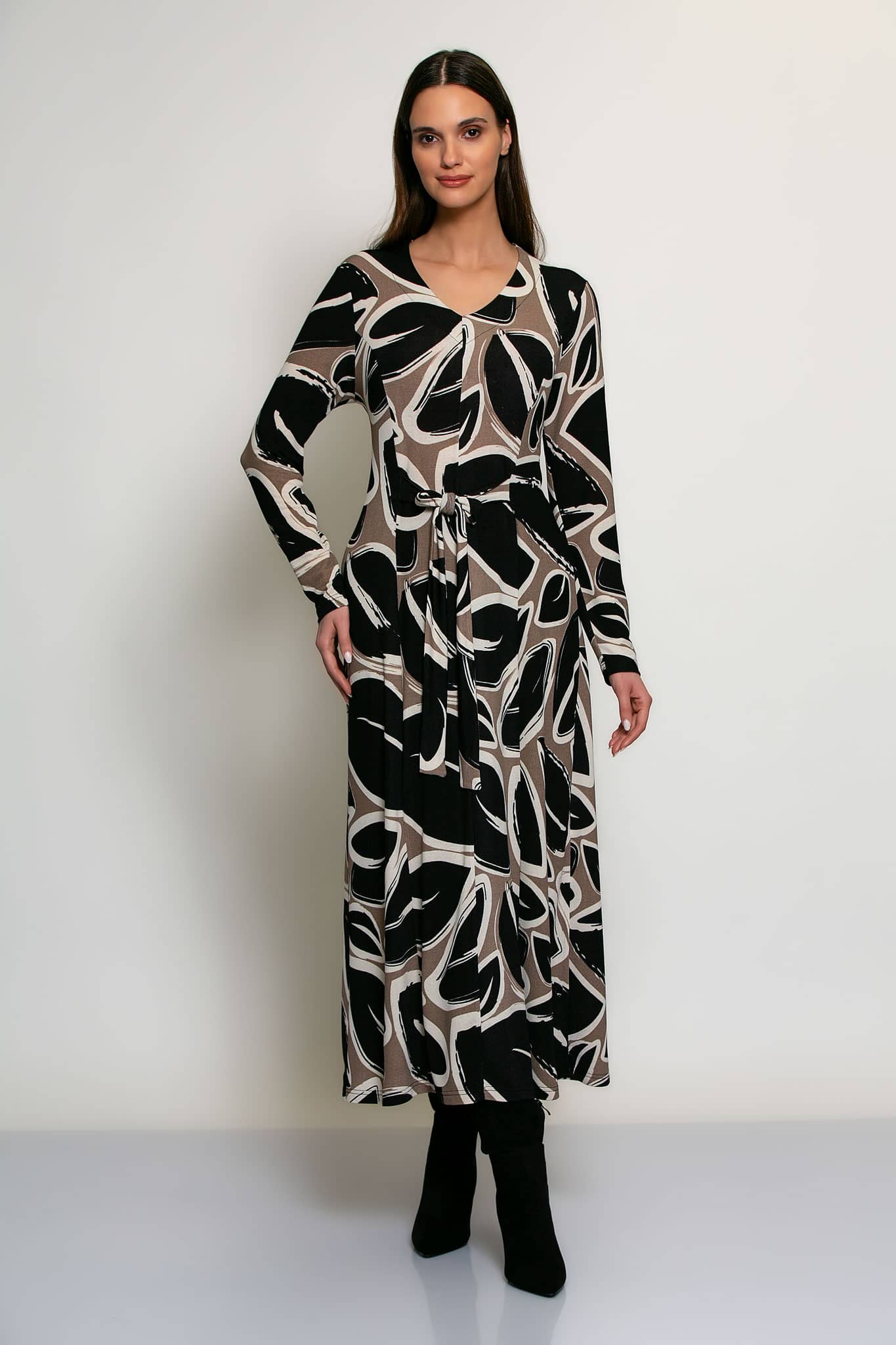 Jurk van Batida in een all-over dessin met lange mouwen, V-hals en een strikceintuur in de taille.