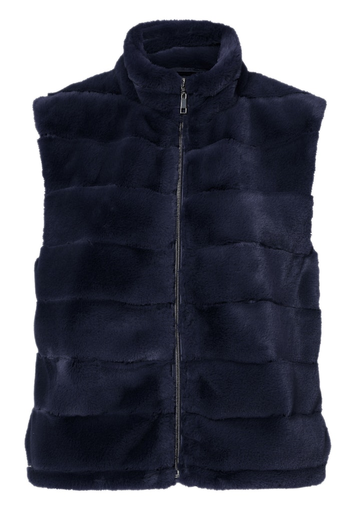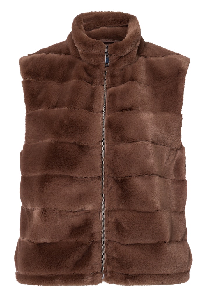 Faux fur gilet van Frank Walder met een ritssluiting en een opstaande kraag. Materiaal: Polyester 100%