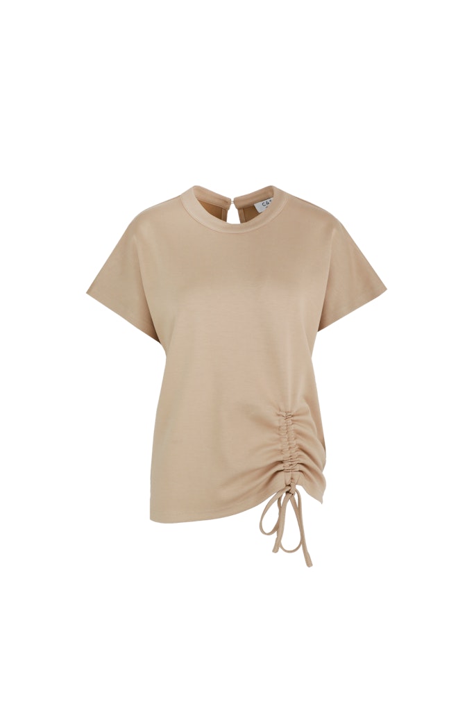 Shirt van C&S The Label met korte mouwen, ronde hals, elastische rimpeling aan de zoom en een keyhole voorzien van knoopsluiting aan de achterzijde. Materiaal: Rayon 55%| polyester 40%| elastan 5%