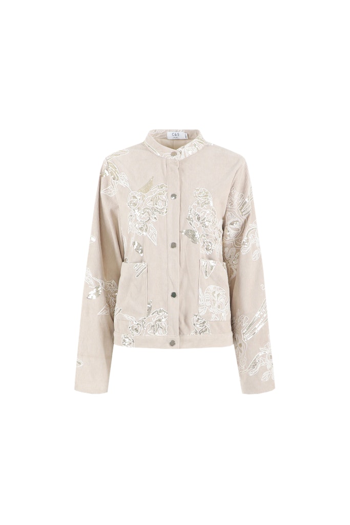 Jacket van C&S The Label in ribstructuur met borduursels, lange mouwen, opstaande kraag, drukknoopsluiting en twee opgestikte zakken. Materiaal: Polyester 100%