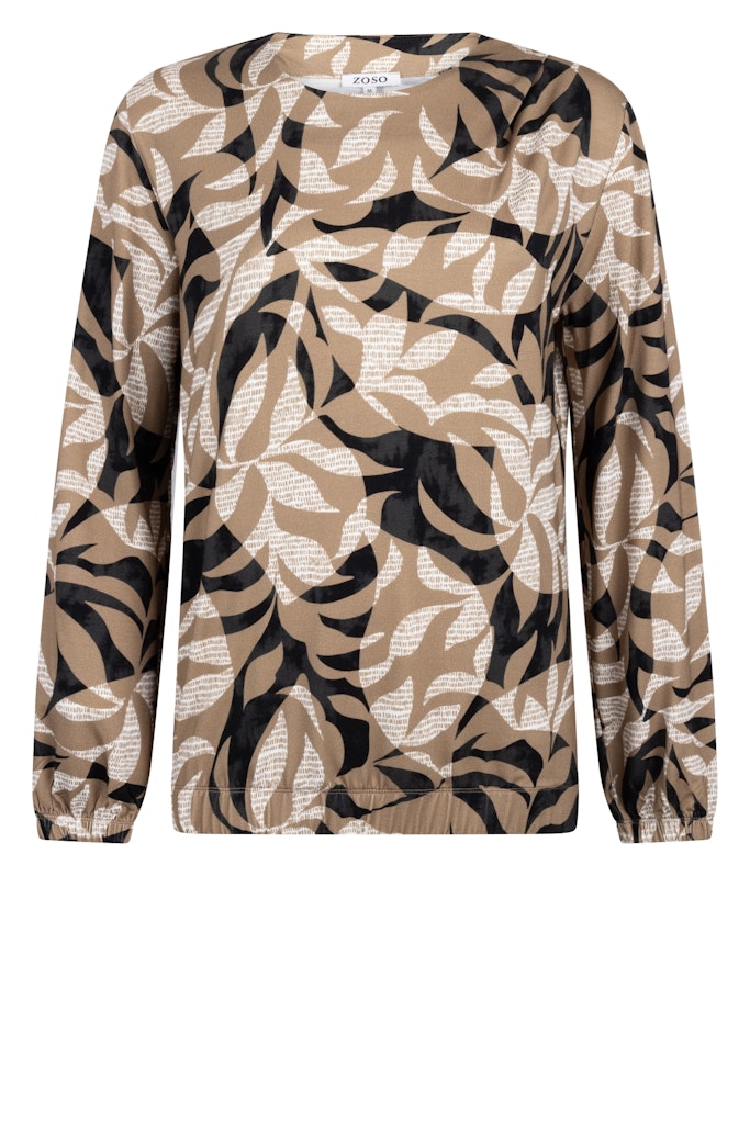 Shirt van Zoso in een all-over bladeren print met lange mouwen, ronde hals en een elastische zoom. Materiaal: Viscose 95%| elastan 5%