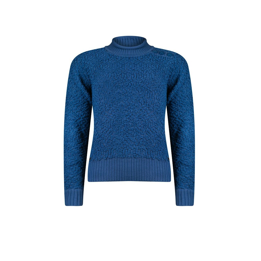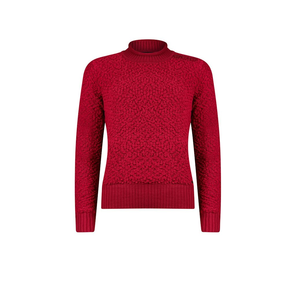 Trui van Roberto Sarto in een lichtgewicht popcorn bouclé garen met lange mouwen, turtleneck, decoratieve knopen op de linkerschouder en ribgebreide boorden.