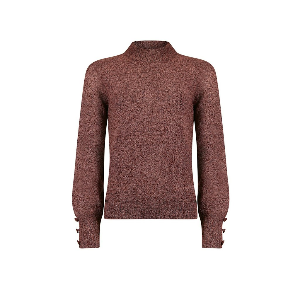 Trui van Roberto Sarto in bouclé garen met een turtleneck en lange mouwen voorzien van brede ribboorden met decoratieve knopen.
