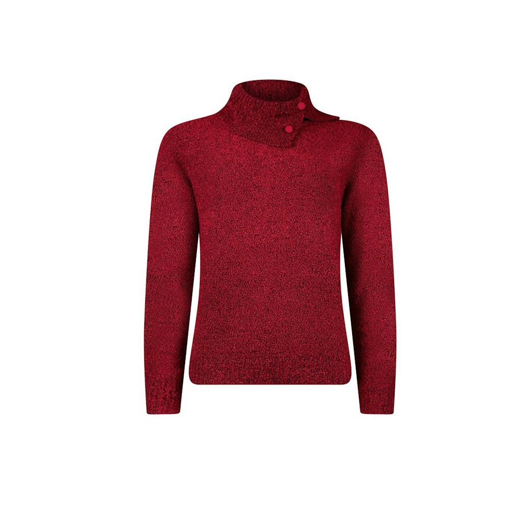 Trui van Roberto Sarto in bouclé garen met lange mouwen, colkraag voorzien van split en decoratieve knopen en ribgebreide boorden.