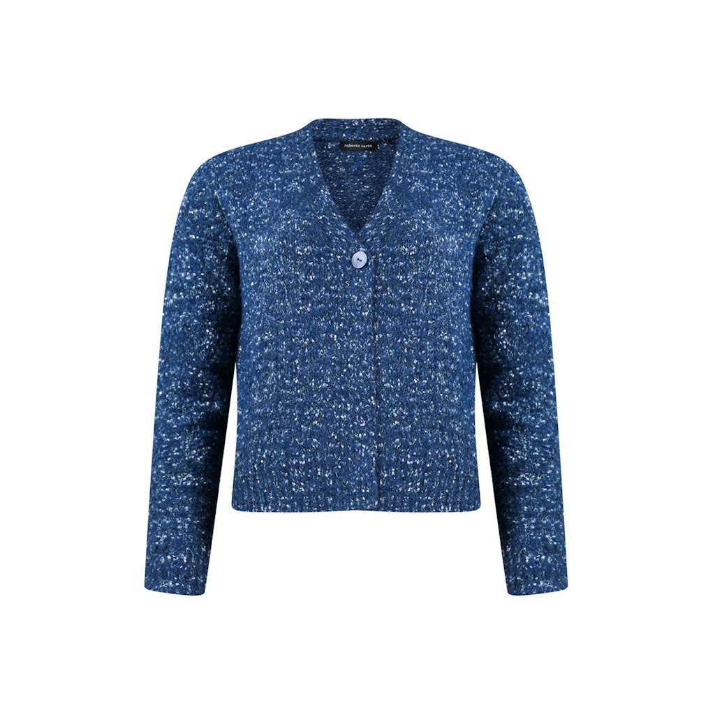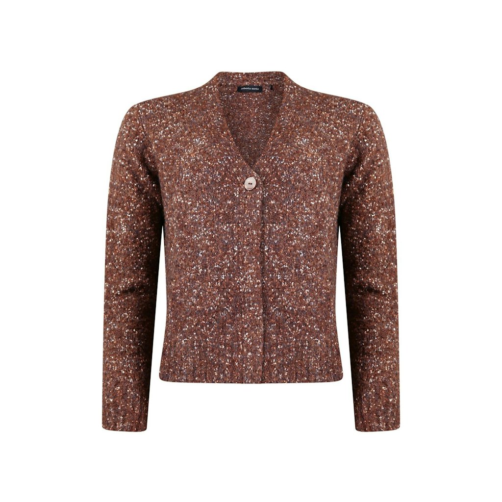 Gemêleerd vest van Roberto Sarto met lange mouwen, V-hals, knoopsluiting en ribgebreide boorden.
