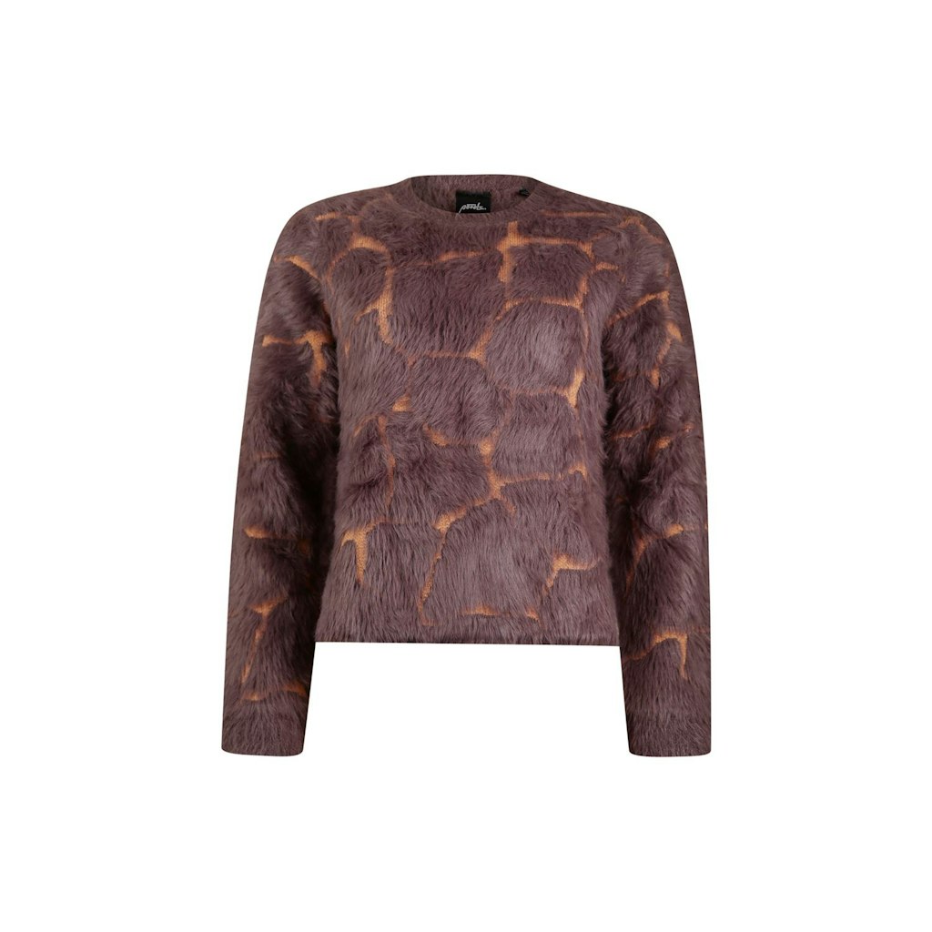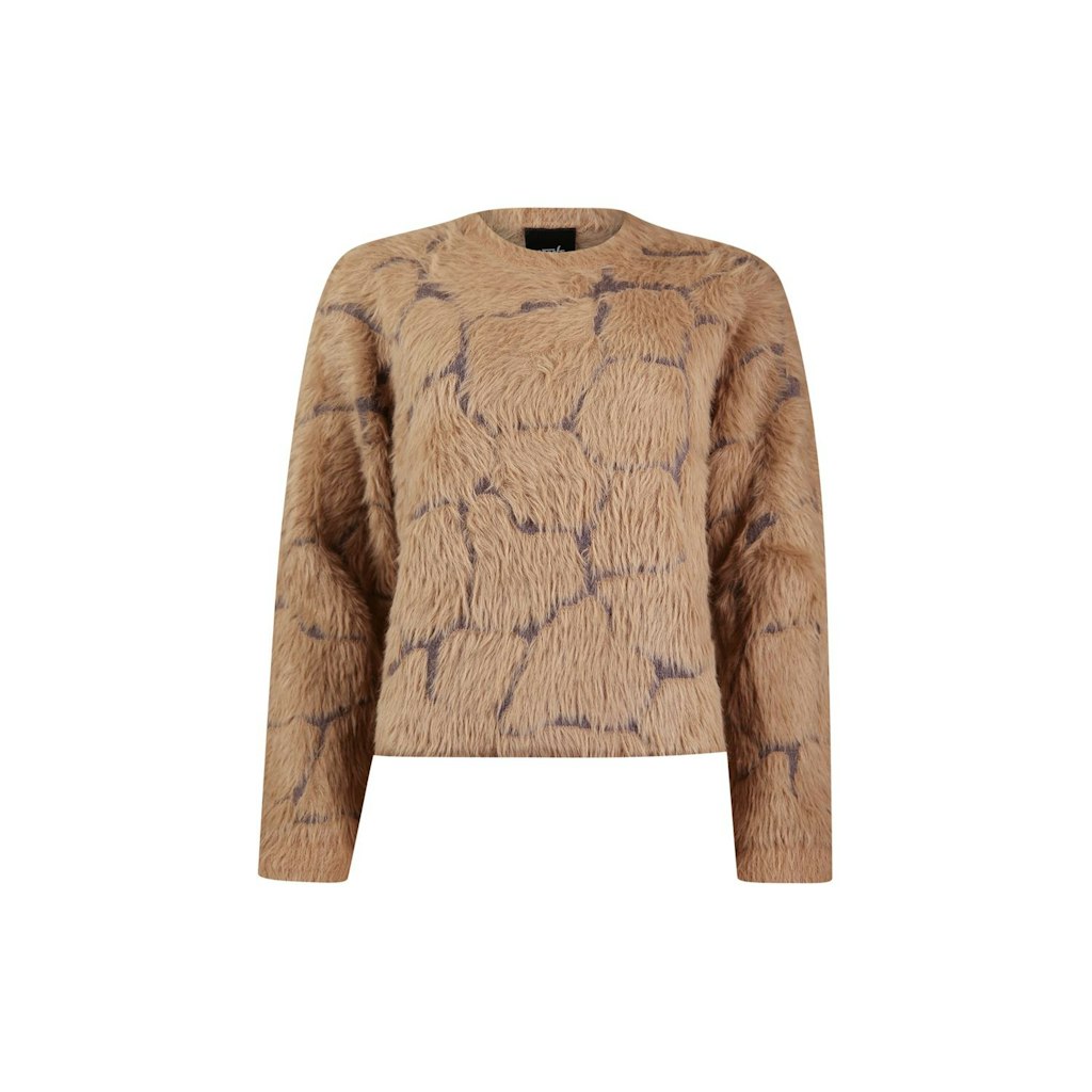 Fluffy trui van Poools in een giraffen dessin met lange mouwen, ronde hals en ribgebreide boorden. Materiaal: Viscose 50%| polyamide 22%| polyester 28%