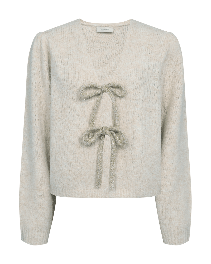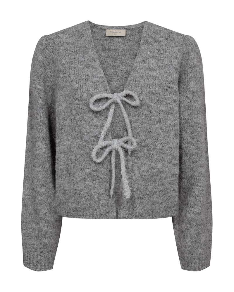 Gebreid vest van Freequent met lange mouwen, V-hals en striksluiting.